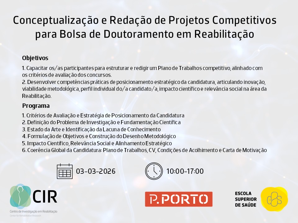 | Conceptualização e Redação de Projetos Competitivos para Bolsa de Doutoramento em Reabilitação