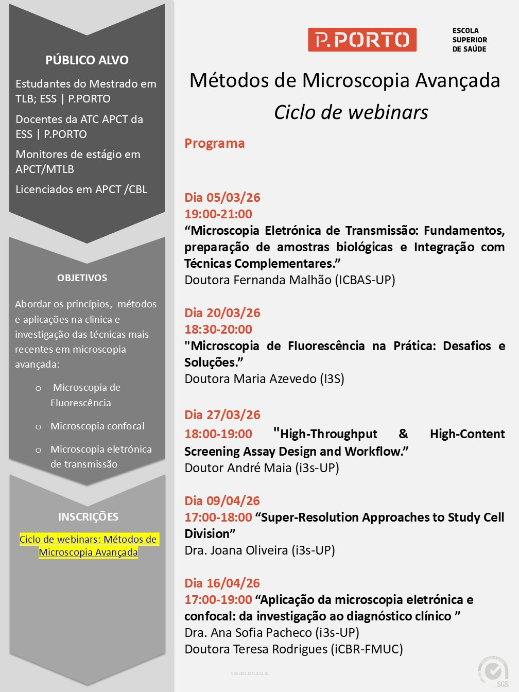 | Ciclo de webinars: Métodos de Microscopia Avançada
