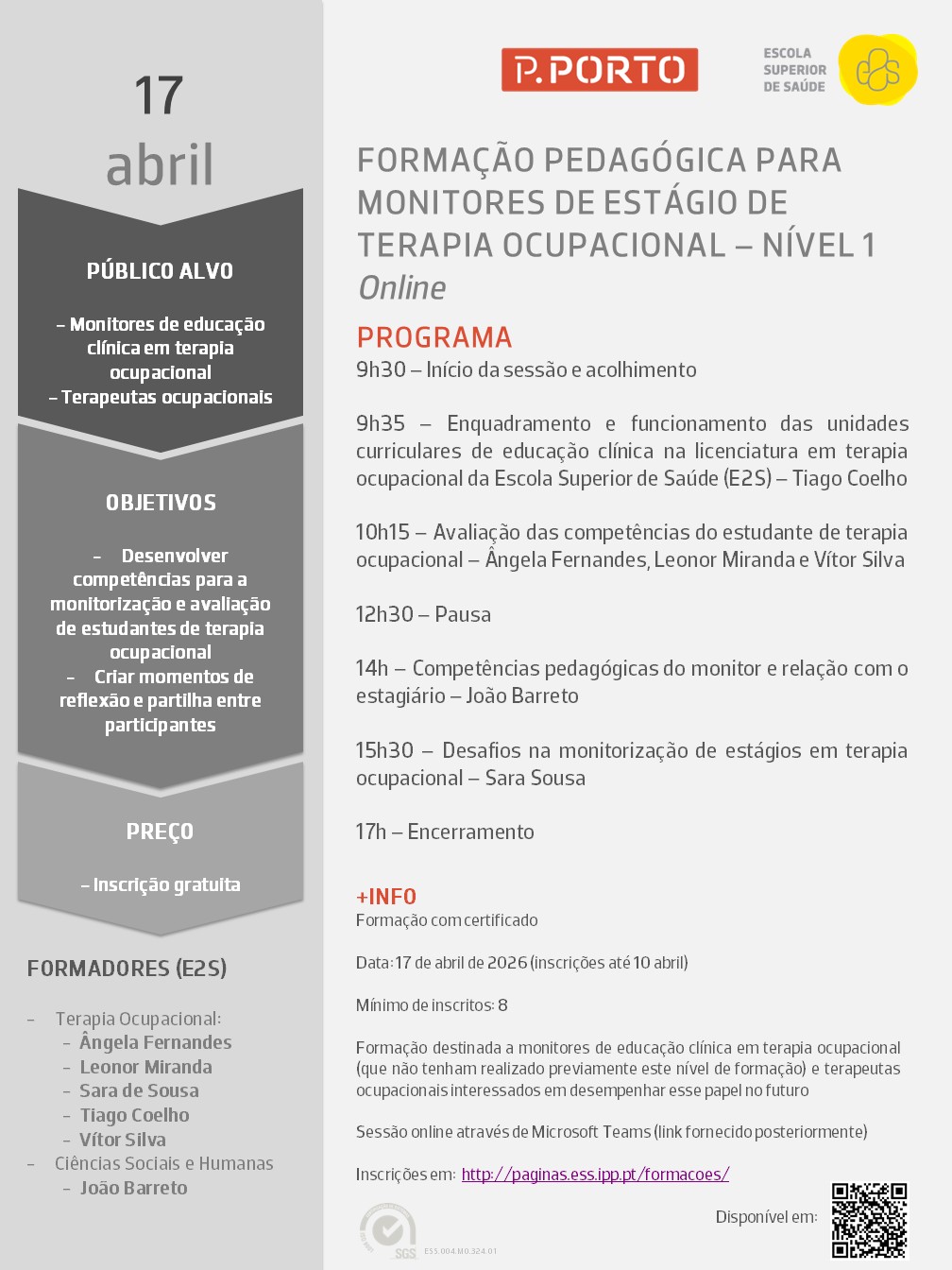| Formação Pedagógica para Monitores de Estágio de Terapia Ocupacional - Nível 1 (online)